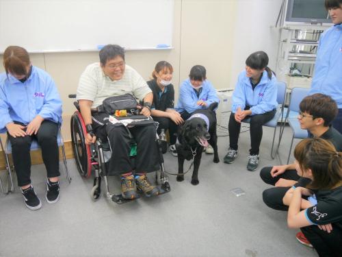 出席:宮崎ペットワールド専門学校の教職員生徒 介助犬ユーザー米盛晃(介助犬レイク)