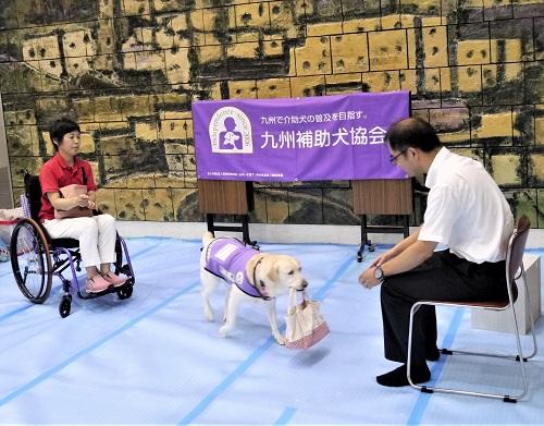 福岡県庁で、8月1日から8月24日まで、夏休みの小学生の皆さんを対象に、「福岡県庁まるごと体験隊2018」が開催されました。当協会は「介助犬の体験企画コーナー」で参加しました。