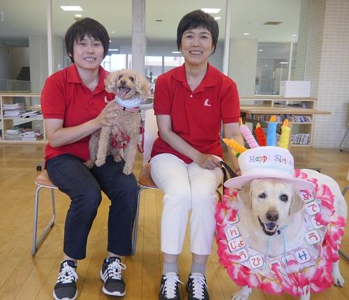 入所者の方とセラピー犬との触れ合いから生まれる笑顔いっぱいの様子が私たちの喜びです。私たち協会は犬とともに高齢者福祉に貢献していきたいと考えております。このたびは、8月生まれのテレサのお誕生日をみんなでお祝いしていただきました。ありがとうございました。