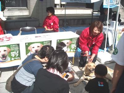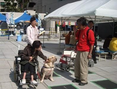 九州補助犬協会のブースでは、福岡市民の皆様に介助犬との