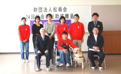 財団法人「松翁会」(東京)から当協会の活動のための助成金の贈呈式が行われました。 助成金は、DVD機器を購入させていただき、介助犬の認知の遅れている九州地方の介助犬啓発に活用させていただきます。「松翁会」の箱崎常務理事様及び関係者の皆様に心より感謝申し上げます。