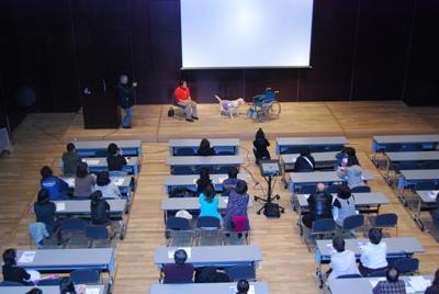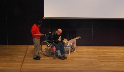 介助犬のお仕事を実演でご紹介させていただきました。介助犬の仕事は身体障害者の自立と社会参加に大変有益であることを理解していただけたと思います。
