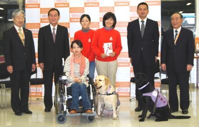 トヨタカローラ福岡 本店にて寄付金の贈呈式が行われました。 この寄付金は2/6,7に行われたカローラ福岡まつりではチャリティーを行い、ダーツゲーム、フワフワゲーム野菜やお花の特売会など19会場での収益金をご寄付いただきました。トヨタカローラ福岡様からの善意のご寄付を介助犬普及に大切に活用させていただきます。トヨタカローラ福岡様のご支援に心より感謝申し上げます。