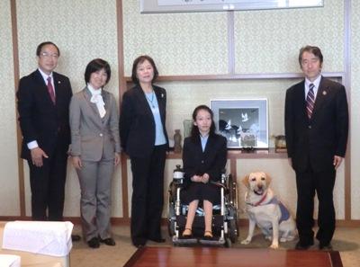 九州補助犬協会が育成を行った白木祐子さんと介助犬ロータスが、厚生労働省指定の認定機関での試験に合格し、身体障害者補助犬法に基づく介助犬として認定されました。 これをもって福岡県副知事を表敬訪問して報告しました。