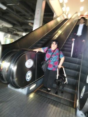 北岡さんとイザラは、エスカレーターの乗降も安全に
