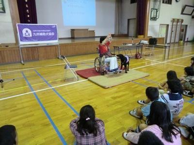 福岡市立花畑小学校の4年生徒さん90名に介助犬の学習をしていただくための介助犬学習を実施させていただきました。