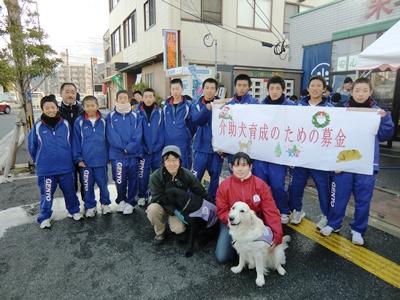 当協会の介助犬育成についてご理解いただき、福岡市立玄洋中学校の生徒会の主催で、JA福岡市今宿支店周辺で募金活動を企画実施していただきました。