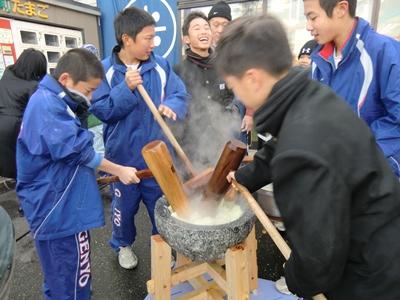 生徒会、野球部などのクラブの生徒、学校のPTAやおやじ会の保護者の皆様が餅つきをしたり、唐揚げを手作りしていただき、販売した収益金も介助犬育成にご寄付いただけるそうです。協力いただきました、生徒と保護者の皆様に、心より感謝申し上げます。