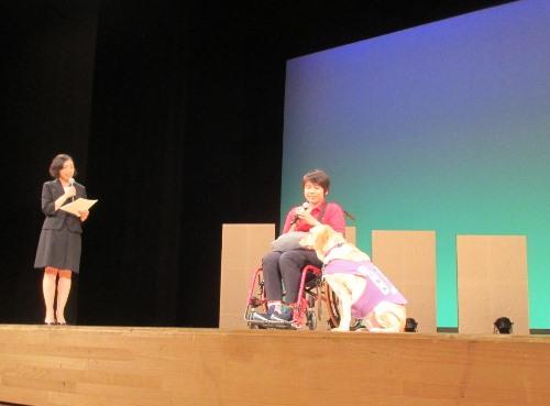 介助犬育成支援チャリティコンサート《丘みどりバラエティショー》のステージで介助犬のお話と仕事をご紹介させていただきました。 地元の皆様から暖かい励ましのお言葉や介助犬育成の募金のご協力をいただきました。
