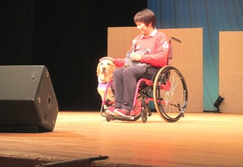 介助犬育成支援チャリティコンサート《丘みどり 歌謡ショー》のステージで介助犬のお話と仕事をご紹介させていただきました。地元の皆様から暖かい励ましのお言葉や介助犬育成の募金のご協力をいただきました。