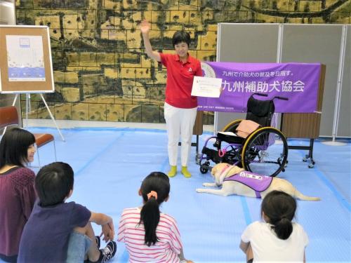 福岡県庁で、8月1日から8月24日まで、夏休みの小学生の皆さんを対象に、「福岡県庁まるごと体験隊2018」が開催されました。当協会は「介助犬の体験企画コーナー」で参加しました。