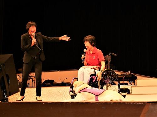 ステージで介助犬のお話と仕事をご紹介させていただきました。地元の皆様から暖かい励ましのお言葉や介助犬育成の募金のご協力をいただきました。