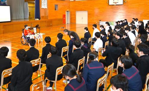 遠賀町立遠賀中学校で、補助犬・介助犬の学習会が開催されました。