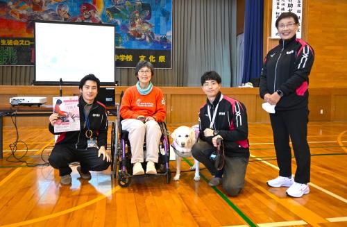 介助犬学習を通じて障害者福祉やバリアフリーについて生徒さんに理解していだきました。