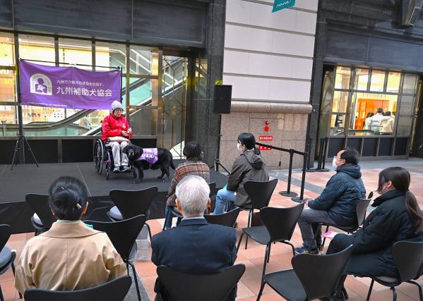 福岡市主催の【福岡市介助犬普及キャンペーン】では、障がい者をサポートする介助犬の役割や必要性、申込み方法や社会の受け入れなどを福岡市民の皆様に深めていただきました。