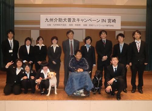 宮崎県のキャンペーンは、ユーザー米盛晃さんと介助犬レイクと参加していただき、介助犬との生活の様子を発表していただきました。、また、宮崎県内唯一のパピーレイザー宮崎ペットワールド専門学校の生徒職員の皆様にも候補犬「ルミナス」と一緒に参加いただき飼育ボランティアについて発表していただきました。開催に当たってご尽力いただきました関係者の皆様に心より感謝申し上げます。