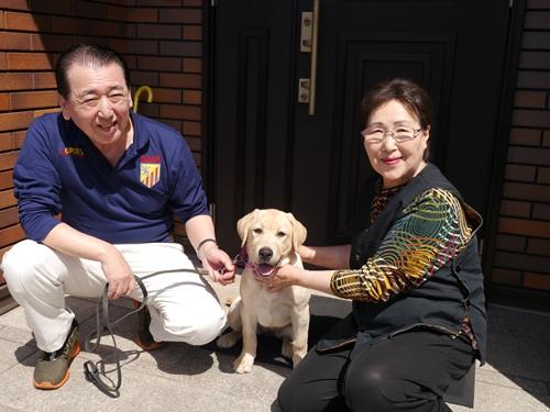 将来介助犬の訓練を受ける、候補犬の子犬リズをパピーレイザー立原様ご家族に飼育委託をお願いしました。