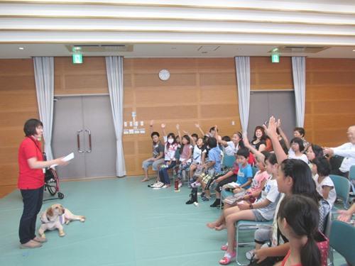 内容 (1)介助犬DVD鑑賞 (2)補助犬・介助犬のお話 (3)介助犬の実演   (4)介助犬の体験  (5)介助犬クイズ