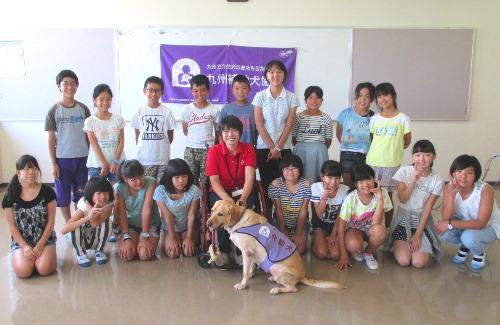 宇美町内の小学生の皆さんに、普段経験できない介助犬との体験学習を通じて障がい者にとっての介助犬の必要性や役割を理解し学習していただきました。