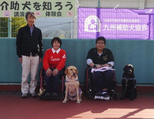 出席 副理事長桜井昭生 訓練士今田晶子(啓発犬グレース)ユーザー米盛晃・介助犬レイク(別府市在住)