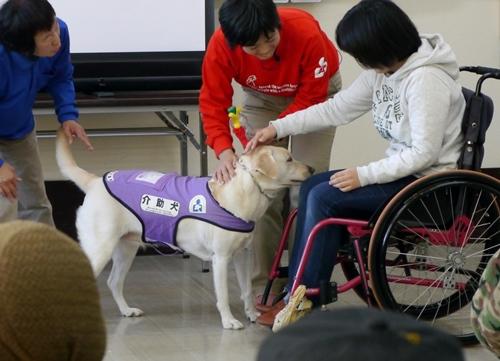 当事者である障がい者の皆様に補助犬の公園と実演、体験をしていただきました。