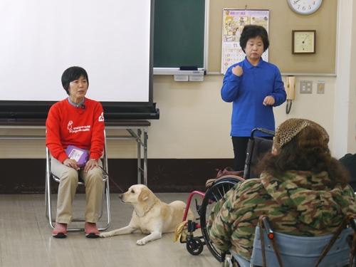 大牟田市身体障害者福祉協会の会員の皆様に介助犬、聴導犬についての役割や生活を共にしたいと希望される場合の申し込み方法などを講演しました。