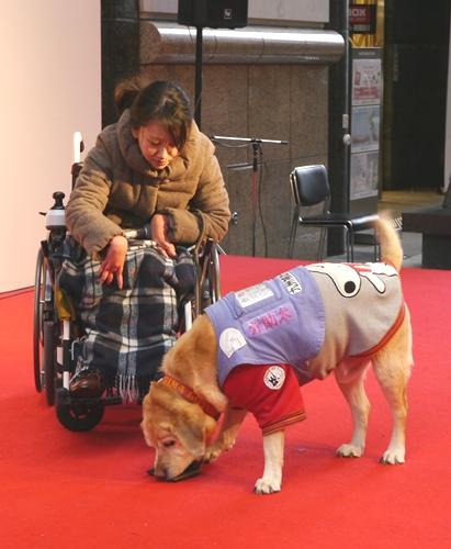 ユーザー義間さんと介助犬ロータスによるデモンストレーション(1)