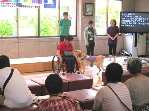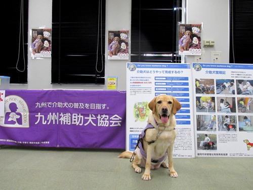高齢者の介護や障害者福祉を身近に感じ理解を深めてもらおうと、糸島市健康福祉センターあごらで7月2日、「糸島福祉機器展」が開催されました。当協会は、介助犬の啓発活動で参加しました。