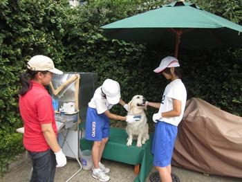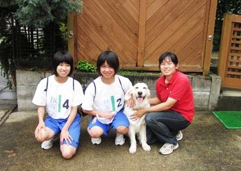 福岡市立玄洋中学校では3年生を対象として総合学習の時間に「福祉・ボランティア体験」を行っています。今回、3年生2名が当協会の介助犬育成を体験学習されました。