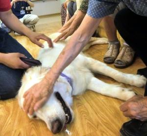 からざステーションではセラピー犬活動を長く継続して頂いているたため、犬の名前を覚えている方が多く和やかな雰囲気の中活動ができました。