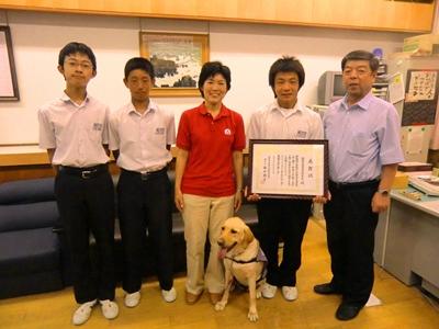 福岡市立玄洋中学校3年生が社会福祉教育の一環として身体障害者のための介助犬育成募金活動に取り組み収益金を当協会に寄付していただきました。このご支援に協会から感謝状を贈呈させていただき感謝の意を表しました。
