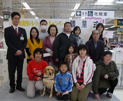 地元のイオンスーパーセンター志摩店様は、介助犬育成に大変ご理解のある企業で、日常から介助犬の訓練で店内を利用させていただき大変感謝申し上げています。当協会は、今後も個人団体など多くの皆様のご支援に支えられながら障がい者の自立と社会参加に有効な介助犬&聴導犬の育成普及に努力してまいります。何卒これからもご支援をよろしくお願い申し上げます。