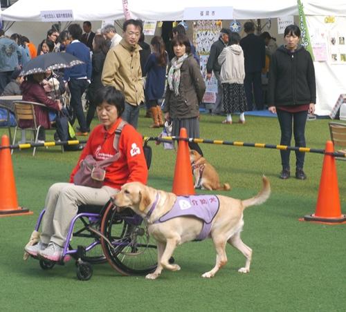 毎年開催される、このフェスティバルでは、会場の皆様に介助犬の役割を知っていただけるよう介助犬のデモンストレーションを実施して理解していただいております。
